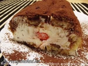 Hozzávalók: 18 darab babapiskóta (hosszúkás) 400 g krémsajt 150 ml tejszín 3 ek édesítőszer vanília aroma 200 ml kávé eper kakaópor Elkészítése: Egy nagyobb alufóliára 3 x 6 sorban kirakjuk a babapiskótákat, és a kihűlt kávéval meglocsoljuk. A krémsajtot, tejszínt, vanília aromát és az édesítőszert kikeverjük, és rákenjük a piskótákra. A lecsepegtetett epret középen kirakjuk […]