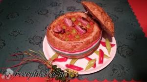 Hozzávalók: 0,5 kg-os cipó 40 dkg darált hús 2 fej vöröshagyma 20 dkg bacon 15 dkg reszelt sajt 1 evőkanál paradicsompüré 2 kaliforniai paprika só bors oregánó étolaj Elkészítése: A kenyér felső részét levágjuk, a belsejét kiszedjük, hogy tölthető legyen. Elkészítjük a tölteléket: az apróra vágott hagymát olajon megfonnyasztjuk, majd rátesszük a darált húst és […]