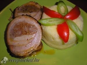 Hozzávalók: 1 kg császárhús kötözött göngyölt 30 dkg sütnivaló kolbász Sertéssült fűszersó 3 dl száraz rosé bor Elkészítése: A húst középen kitágítom, hogy a tölteléknek legyen helye. Kötözött császárhúst a gumis kötegtől függően könnyen lehet tölteni anélkül, hogy levennénk róla. A kolbászt meleg víz alatt megmosom és a bélből könnyen kinyomom a húst .Ezzel a […]