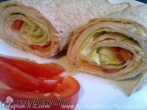 Hozzávalók: tortilla (akár házilag készített) 100 g tömlős sajt 150 g tonhal konzerv 1 ek majonéz őrölt bors szeletelt sonka saláta (rukkola, jégsaláta) paradicsom Elkészítése: A tonhalról leöntjük az olajat, majd összekeverjük a tömlős sajttal, majonézzel és ízesítjük őrölt borssal. A tortillát megkenjük a krémmel, erre sonkaszeleteket teszünk, a közepére vékonyra szeletelt paradicsomot és egy […]