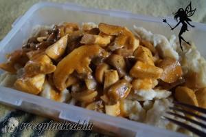 Hozzávalók: 30 dkg csirkemellfilé 15 dkg csiperke gomba szeletelve 6 koktélparadicsom 1 dl tejszín só 1 vöröshagyma 1 kk oregano kevés őrölt bors 1 tk zúzott fokhagyma paradicsompüré 4 ek olaj 1 ek étkezési keményítő 1 kk citromlé 1 tk fűszerpaprika Elkészítése: A hagymát apróra vágjuk, és olajon megpirítjuk a feldarabolt mellfilével. Hozzáadjuk a fokhagymát, […]