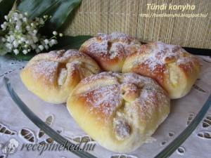Hozzávalók: Tészta hozzávalói: 25 dkg rétesliszt 25 dkg finomliszt kb. 1,5 dl langyos tej 1 tojás 1 csipet só 2,5 dkg élesztő 8 dkg olvasztott margarin 2 púpozott ek cukor Töltelék hozzávalói: 45 dkg tehéntúró 2 ek tejföl 2 ek búzadara kb. 5 ek cukor (ízlés szerint) 1 csomag vaníliás cukor 1 marék mazsola 1 […]