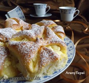 Hozzávalók: Tésztához: 50 dkg liszt 0,5 kk só 2,5 dkg élesztő 2 dl tej 2 ek cukor 1 tasak vaníliás cukor 10 dkg margarin 1 egész tojás Töltelékhez: 45 dkg túró 2 tasak vaníliás cukor 2 ek cukor 0,5 kezeletlen citrom héja 1 egész tojás Lekenni: 1 egész tojás Elkészítése: z élesztőt a meleg, de […]