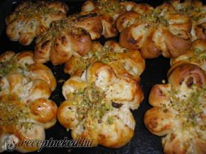 Hozzávalók: Tészta: 40 dkg liszt 2 dkg élesztő 2 dl langyos tej 5 dkg cukor 1 tojássárgája 5 dkg olvasztott vaj Töltelék: 25 dkg túró 3 ek porcukor 2 csomag vaníliás cukor 1 ek búzadara 10 dkg aszalt sárgabarack Tetejére: 1 tojássárgája 2 ek natúr zöld pisztácia Elkészítése: Az élesztőt pici cukorral elkevert langyos tejbe […]