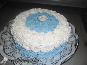 Hozzávalók: Piskóta: 6 tojás 20 dkg cukor 4 ek víz 20 dkg liszt 3 ek kakaópor 1 tk szódabikarbóna 2 ek olaj Krém: 500 g túró 4 dl tejszín ízlés szerint porcukor fél citrom leve 1-2 ek tejföl 150 g csokoládé Elkészítése: A tojásfehérjét kemény habbá verjük, majd apránként hozzáadjuk a cukrot, ezután a tojás […]