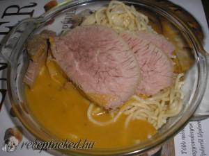 Hozzávalók: A pácoláshoz: 60 dkg marha fehérpecsenye 2-3 db babérlevél 1 vöröshagyma 1 ek mustár őrölt bors 1 citrom tisztított, hámozott héja 3 evőkanál olívaolaj A szószhoz: 3 sárgarépa 1 fehérrépa 6 dl húslé 3 evőkanál barna cukor 2 dl tejföl citromlé 1-2 evőkanál étkezési keményítő 1 kiskanál mustár Elkészítése: 24 órára bepácoljuk a húst […]
