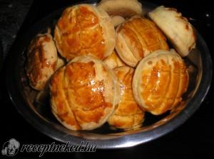 Hozzávalók: 50 dkg liszt 25 dkg vaj 20 dkg reszelt sajt 1 evőkanálnyi só 2 dl tej 1 tojás Elkészítése: A lisztet egy tálba tesszük, majd hozzáadjuk a szobahőmérsékletű vajat, a reszelt sajt felét, a tejet, tojást. Alaposan összedolgozzuk az egészet. Akkor jó a tészta, ha elválik az edény falától és a kezünktől, viszont nem […]