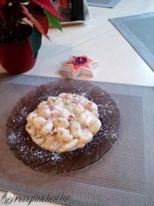 Hozzávalók: 2 csomag gnocchi 20 dkg sonka 10 dkg szalonna kis fej hagyma 2 gerezd fokhagyma 10 dkg vargánya 2 dl főzőtejszín 2 tömlős sajt só, bors, rozmaring, petrezselyem Elkészítése: Az apróra vágott szalonnát megpirítjuk, majd rádobjuk az apróra vágott hagymát, sonkát és vargányát. Pár perc múlva a sajtot és a tejszínt is. Fűszerezzük, hozzáadjuk a […]