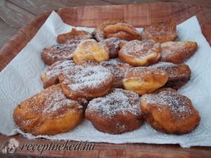 Hozzávalók: 25 dkg túró 6 ek liszt 2 ek cukor 3 tojás 1 cs.vaníliás cukor 1 csipet szódabikarbóna pici reszelt citromhéj(elhagyható) olaj a sütéshez porcukor a szóráshoz Elkészítése: Az egészet összekeverjük egy kanállal(én botmixerrel is kevertem rajta egy kicsit). Az olajat egy serpenyőben felforrósítjuk és egy evőkanállal beleszaggatjuk a masszát. (érdemes néha a kanalat megmártani […]