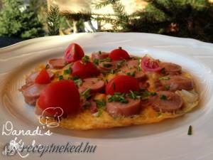 Hozzávalók: 1 virsli 1 tojás kevés kockázott bacon 1 sonkahagyma snidling koktél paradicsom só, bors kevés zsiradék Elkészítése: A hozzávalókat karikázom. Kevés zsiradékon felolvasztom a bacont, majd hozzáadom a karikázott hagymát. Kicsit pirítom. Beleteszem a virslit is és együtt pirítom tovább. A végén hozzáöntöm a felvert tojást. Most már nem keverem, hanem hagyom, hogy együtt […]