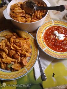 Hozzávalók: 1 közepes fej vöröshagyma 1 dl étolaj 3 pár virsli felszeletelve 1 evőkanál színes paprika 1 teáskanál só fél mokkáskanál bors 25 dkg tészta 0,5 dl ketchup 2 dl tejföl 1 csapott evőkanál liszt 1 dl víz Elkészítése: A tésztát sós vízben kifőzöm, leszűröm. A hagymát felszelem, az olajon meginsztelem. Rádobom a felkarikázott virslit, […]