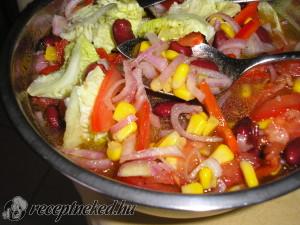 Hozzávalók: 3 db körte paradicsom, ha nincs a sima paradicsom is jó 5 db salottahagyma, vagy lila hagyma, esetleg sonkahagyma 5 dkg főtt kukorica 20 dkg vörös bab főtt ( konzerv) 1 db szívsaláta, ennek hiányában jégsaláta ( semmi esetre sem más fajta saláta) 1 db kaliforniai paprika piros 3 ek olívaolaj 2 ek méz […]