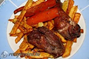 Hozzávalók: 1 egész csirke 1 nagyobb szál répa 2 babérlevél 1 dl víz 1 nagy fej vöröshagyma 1 ek zsír só bors majoranna oregánó 4 dl vörösbor Elkészítése: A csirkét megpucoljuk majd darabjaira vágjuk. A répát és a hagymát nagyobb darabokra vágjuk. Egy nagyobb lábasba vagy tepsibe rakjuk a húst, mellétesszük a répát és hagymát. […]