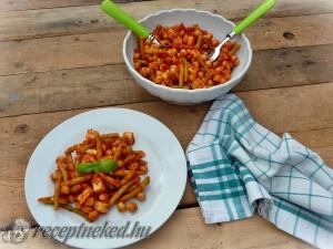 Hozzávalók: 25 dkg zöldbab 40 dkg csicseriborsó (konzerv) 1 gerezd fokhagyma 10-12 db olajban eltett aszalt paradicsom 15 dkg edami sajt 2-3 ek málnaecet édesítőszer (v. cukor) só őrölt fehér bors friss bazsalikom 1 dl olívaolaj Elkészítése: A zöldbabot vágjuk fel nagyobb darabokra, majd enyhén sós vízbe főzzük kb. 10 percig, hogy roppanós maradjon. Ezután […]