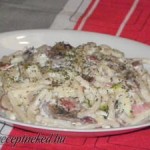 Hozzávalók: 50 dkg zöldborsó 50 dkg csemegekukorica 1 csirkemell 1 szál sárgarépa 1 szál fehérrépa 2 ek étolaj 1 ek finomliszt 3 tk ételízesítő 1 mk pirospaprika 1 csokor petrezselyemzöld 1 ízlés szerint só 5 dkg levestészta Elkészítése: A csirkemellet kicsontozom, a húst vékony csíkokra vágom. A répákat kockára vágom, és az olajon elkezdem pirítani, […]