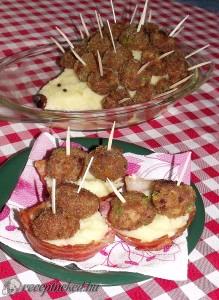 Hozzávalók: Fasírthoz: 1 kg darált hús 2 fej vöröshagyma 3-4 gerezd fokhagyma 2 tojás 3 zsemle kicsi tej 10-15 dkg zöldborsó só, bors, pirospaprika Krumplipüréhez: 2 kg krumpli 10 dkg vaj kicsi tej (1-2 dl) Elkészítése: A hagymát apróra vágjuk és üvegesre pirítjuk. A zsemléket beáztatjuk a tejbe, majd jól kifacsarjuk és a húshoz adjuk, a […]