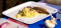 Környei Ernő, séf zöldséges kuszkuszt készített, sült aranydurbinccsal.