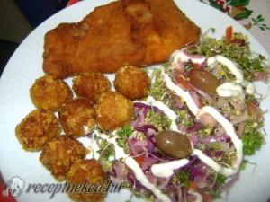 Hozzávalók: Körethez: 1/2 kg burgonya pár kanál liba vagy kacsazsír só 2 gerezd fokhagyma 2 kanál zsemlemorzsa 1 tojás 5 dkg CORN FLAKES morzsa kicsit durvára törve 2 dl étolaj a sütéshez Rántott lazachoz: 2 db 20 dkg-os lazacfilé 1 kávéskanál szárított, őrölt zsálya só 1 kanál olíva olaj 1 kanál citromlé Panírozáshoz: 2 tojás […]
