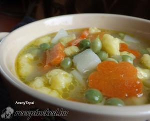 Hozzávalók: 40 dkg zöldborsó 2 nagyobb sárgarépa 4 közepes krumpli 1 kis vöröshagyma 1 csapott ek liszt 1 púpos tk házi ételízesítő (esetleg 1 leveskocka) 1 nagy csipet bors 1 csapott kk só 2 ek olaj Galuskához: 5 dkg liszt 1 nagy csipet só 1 nagyobb tojás 3 dkg vaj Elkészítése: A zöldségeket megtisztítjuk, a […]