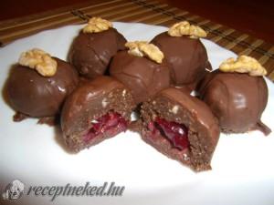 Hozzávalók: Tészta: 15 dkg darált dió 20 dkg darált háztartási keksz 1 evőkanál kakaópor 2 evőkanál baracklekvár 2 cs vaníliás cukor kb. 10 szem meggy 1/2 dl meggylé Máz: 15 dkg tortabevonó 15 dkg margarin Elkészítése: A tészta hozzávalóit jól dolgozzuk össze, a meggyszemek kivételével. A jól összedolgozott tésztából diónyi golyókat formálunk, úgy hogy minden golyóba beledugunk […]