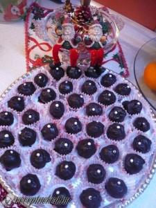 Hozzávalók: 15 dkg aszalt sárgabarack 15 dkg darált dió 3 cl konyak 2 cl rum 2 evőkanál porcukor 2 evőkanál sárgabaracklekvár 15 dkg étcsokoládé 1 evőkanál olaj Elkészítése: A sárgabarackot jó apróra összevágjuk és leöntjük konyakkal. Egy órát állni hagyjuk, majd hozzáadjuk a többi hozzávalót és összegyúrjuk. Kis golyókat formálunk belőle és hűtőbe tesszük. A […]
