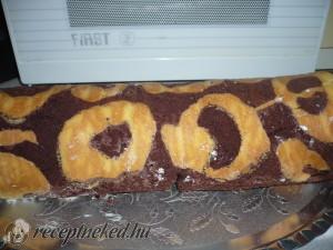 Hozzávalók: Tészta: 4 egész tojás 25 dkg porcukor 25 dkg liszt 3 evőkanál kakaópor 1 dl víz 1 dl olaj 0,5 csomag sütőpor Krém: 500 ml tejszín 2 csomag vaníliás cukor 1 tasak zselatin fix 250 g gesztenyemassza 1 rumaroma Elkészítése: A tojás sárgáját a porcukorral habosra keverem, hozzáadom a vizet, az olajat és a […]
